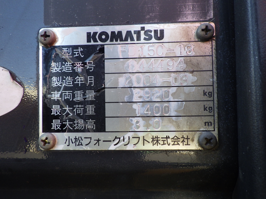 Thông số kỹ thuật Xe nâng dầu 1,5 tấn KOMATSU số khung 644494