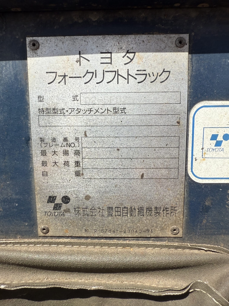 Xe nâng dầu 2,5 tấn TOYOTA 5FD25 số tự động, gật gù nhập Nhật, nâng cao 4m. Xe đẹp giá tốt Nhập Nhật - Liên hệ ngay 0989459456 Mr Hải Công ty CP thiết bị 456