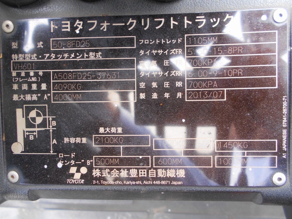 Thông số cơ bản Xe nâng dầu 2,5 tấn TOYOTA 50-8FD25