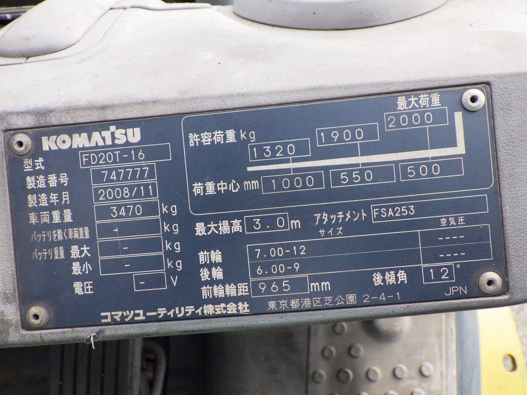 • Model: KOMATSU FD20T-16