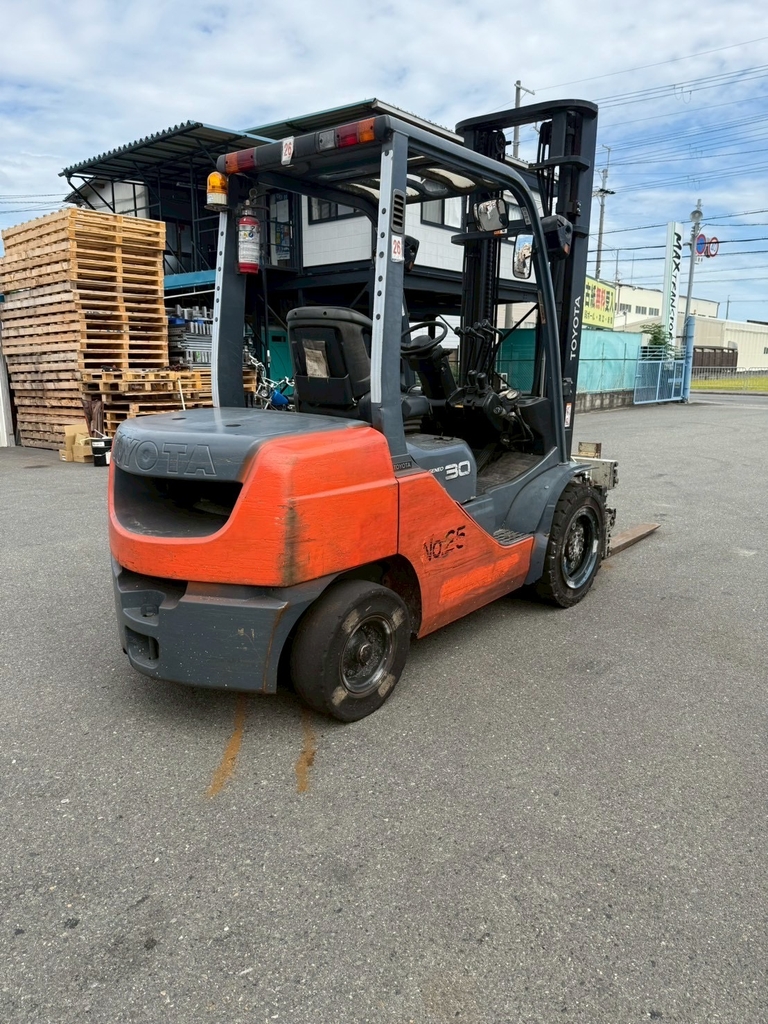 Xe nâng dầu 3 tấn TOYOTA 8FD30 số sàn, mâm xoay, dịch càng, chiều cao nâng 4m, sản xuất năm 2014. Xe sử dụng động cơ 3Z, là dòng động cơ kim phun cơ đời mới nhất mang lại hiệu suất cao và cực kỳ tiết kiệm nhiên liệu