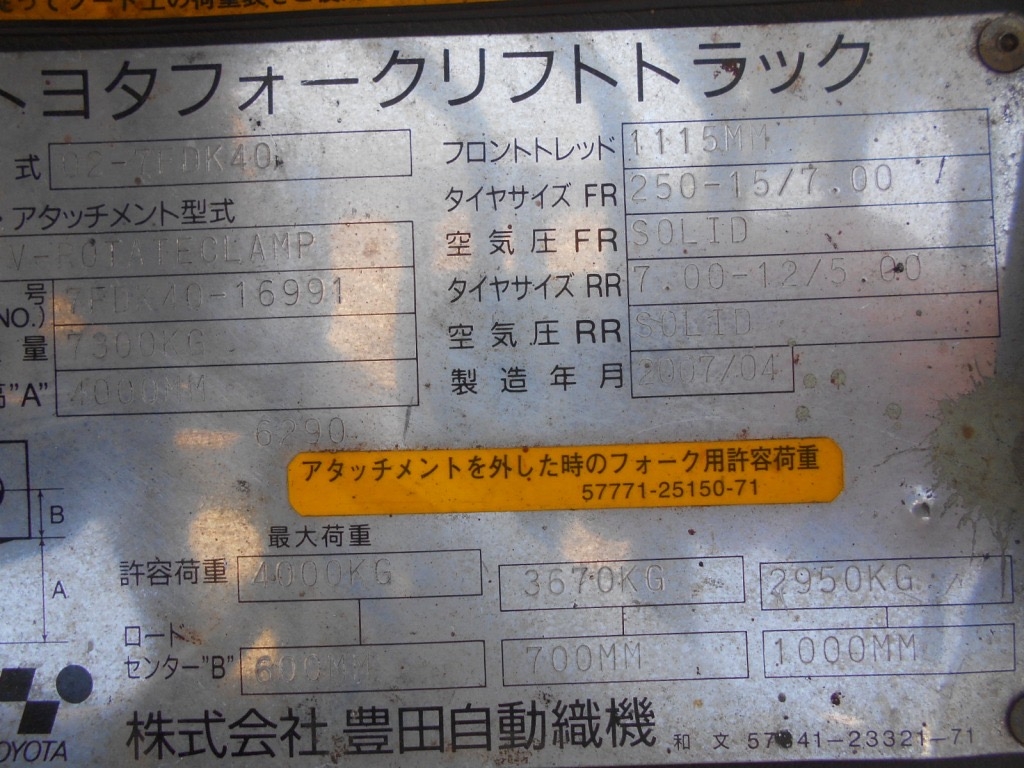 Thông số Xe nâng dầu 4 tấn TOYOTA 7FDK40