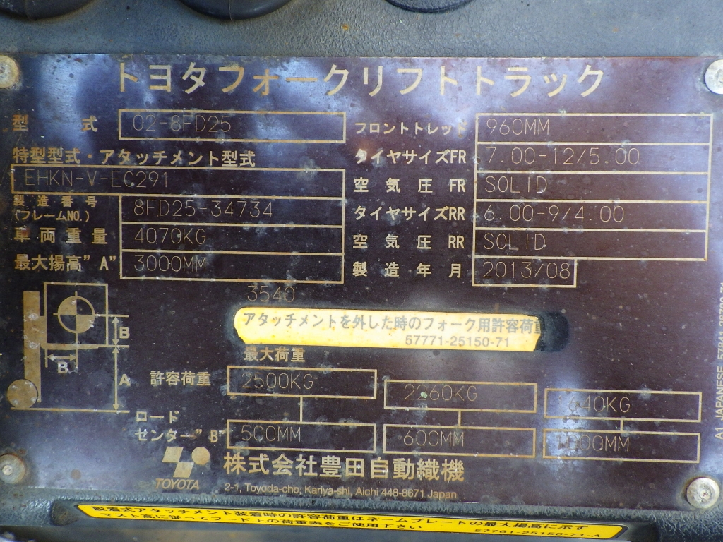 Thông số cơ bản Xe nâng dầu 2,5 tấn TOYOTA 02-8FD25